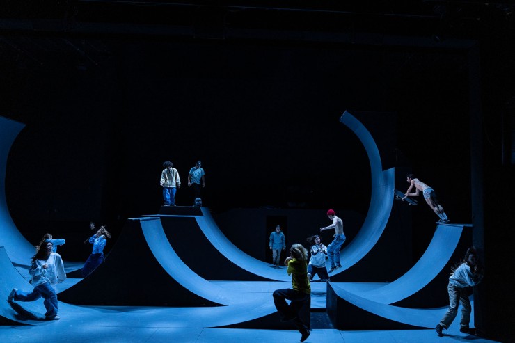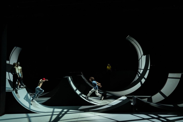 LA TROUPE UMA | Une chorégraphie théâtrale de Nicolas Musin | Dramaturgie : Nicolas Musin et Mathilde Soutter | Musique : Philip Glass, Tim Paris et Léo Rachado | Textes : Kae Tempest, Henri Michaux et extraits d’interviews de skateurs | Chorégraphie : Nicolas Musin et la troupe UMA I Lumière : Jean-Marc Skatchko | Jeu : Anh-Ly Rivet, Tianée Achille, Alexandra Prieur-Drevon, Norine Botella, Geena Théraulaz, Merit Laengner, Jessica Wyttenbach, Zoe Salvalai, Luna Traullé, Matylda Pioro, Sara Pocan, Adrianna Fimeyer, Ainhoa Otero, Hugo Flé, Kevin Bringolf, Noé Lüthi, Liam Litardo, Benjamin Penela Antunes, Tiago Tomaz, Swan Ducrot-Lelong, Aristide Guisolan, Florian Maillet De Viti, Chany Jeanguenin, Baptiste Bordier, et le Quatuor à cordes DAHM – Lois Decloître, Émilie Weibel, Sofia Lluna, Nandingua Bayarbaatar (violon, en alternance), Julie Voisin-Banasiak, Juliette Kowalski (altos, en alternance), Joséphine Dive (violoncelle) | Répétiteurs : les enseignants d’UMA et Lionel Brady | Régie lumière : Rémi Furrer | Régie son : Léo Marussich, Jean Faravel | Régie plateau : Julien Taplain et François-Xavier Thien (en alternance)