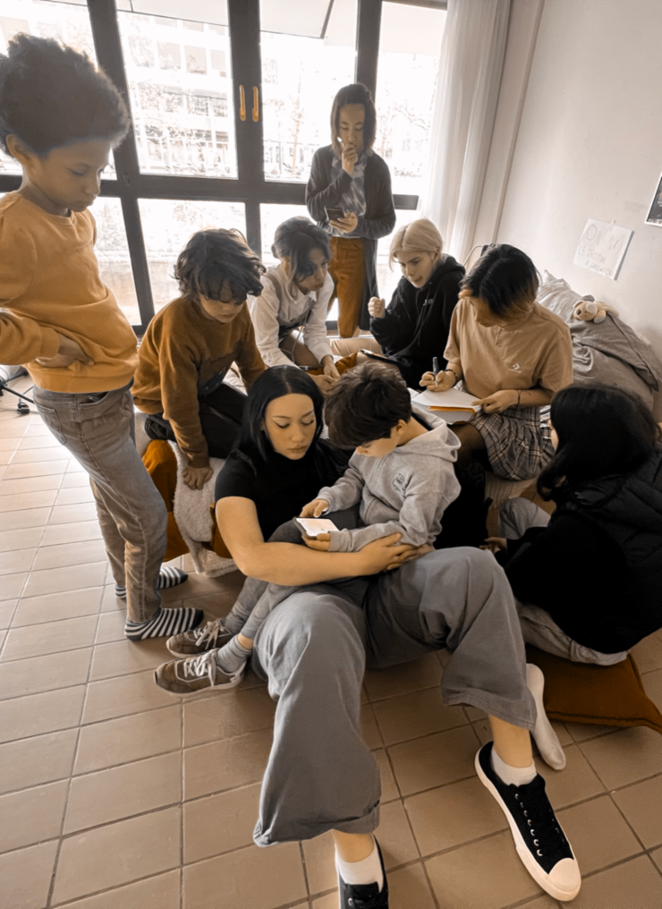 CHEMINS DE TRAVERSE | Conception : Caroline Bernard, Gaël Sillere | Performeur·euses : Ambre Balabeau, Léa Gekas, Léonce Guichard, Sarah Ndiaye, Maliah Ndiaye, Claire Pakutu, Clarisse Pakutu, Dénali Roussel, Mafalda Sambo, Délia Sévillano, Jade Vidal, Zita-Carmen Velluz | Réalisation film : Ariane Catton, Jean Faravel, Léa-Célestine Bernarsconi | Scénographie : Sarah Schneider | Conception lumière : Rémi Furrer | Conception installation : Yann Longchamp | Régie son : Jean Faravel | Régie lumière et vidéo : Ian Durrer | Montage IA : Guillaume Pascale | Remerciements : Marielle Ndiaye, Damien Guichard